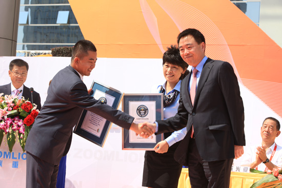 英國吉尼斯世界紀錄認證管給中聯重科頒發證書