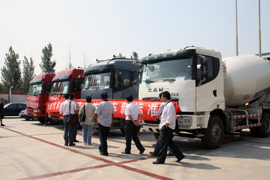 圖為物流運(yùn)輸用戶在邯鄲巡展現(xiàn)場(chǎng)咨詢車輛
