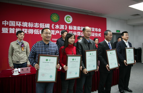 近日,中國環(huán)境標志低碳《水泥》標準實施新聞發(fā)布會暨首批獲得中國環(huán)境標志低碳水泥產(chǎn)品認證示范企業(yè)頒證儀式在環(huán)境保護部環(huán)境發(fā)展中心會議室舉行。