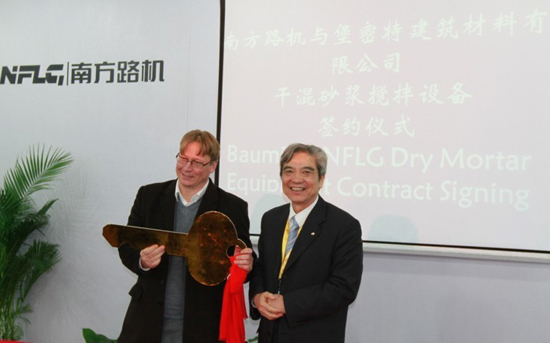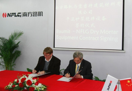 11月29日下午四點(diǎn)半,南方路機(jī)展位二樓貴賓接待廳,南方路機(jī)與堡密特建筑材料(蘇州)有限公司舉行簽署儀式。出席簽署儀式的有南方路機(jī)董事長(zhǎng)方慶熙、總經(jīng)理方凱,堡密特建筑材料(蘇州)有限公司執(zhí)行董事慕武威先生、堡密特項(xiàng)目經(jīng)理Roman、熊少波。慕武威先生強(qiáng)調(diào)堡密特公司與國(guó)內(nèi)外眾多企業(yè)一樣都追求質(zhì)量第一,在多次綜合考核考察南方路機(jī)在生產(chǎn)時(shí)間、生產(chǎn)質(zhì)量和質(zhì)量檢測(cè)方面都做了很大的工作都非常滿(mǎn)意,因此最終選定南方路機(jī)干混砂漿攪拌設(shè)備。