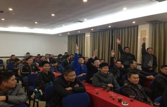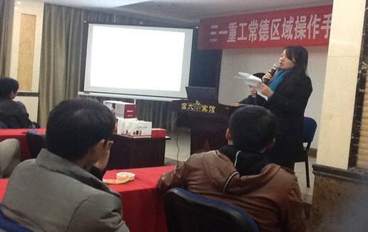 此次活動(dòng)分為七個(gè)部分:主持人致歡迎辭及操作手俱樂部章程講解、領(lǐng)導(dǎo)致開幕詞、客戶代表演講、泵車養(yǎng)護(hù)及安全操作培訓(xùn)、攪拌站操作知識(shí)培訓(xùn)、有獎(jiǎng)問答、答謝晚宴?;顒?dòng)伊始,由本次活動(dòng)的主持人湖南三一客戶管理專干張蓉致歡迎辭。她首先深深一鞠躬,對(duì)在百忙之中抽空蒞臨會(huì)場(chǎng)的各位客戶嘉賓表示誠(chéng)摯的歡迎和由衷的感謝,表示正是有了各位嘉賓對(duì)三一的支持和信賴,才讓我們看到了三一的騰飛和發(fā)展,并表示我們將一如既往地秉承自強(qiáng)不息、產(chǎn)業(yè)報(bào)國(guó)的企業(yè)精神,秉承品質(zhì)改變世界的三一使命,秉承一切為了客戶的經(jīng)營(yíng)理念,與各位客戶攜手合作,共同發(fā)展。她詳細(xì)講述了成為三一操作手俱樂部會(huì)員后客戶們可以享受到的各項(xiàng)權(quán)益,大家聽得很認(rèn)真,時(shí)不時(shí)拿筆在本子上記錄著。