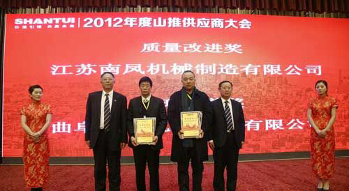 山推表彰了13家優秀供應商銅牌、5家銀牌和首批36家戰略供應商。獲獎企業代表在隨后的發言中表達了緊跟山推發展步伐,與山推一起同風雨、共未來的信心和決心。