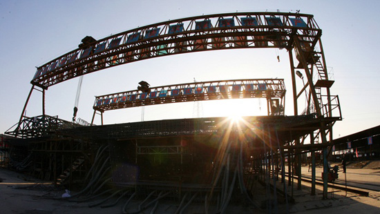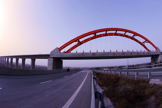 風聲、運梁車蠕動發出的轟鳴聲與鄰近村子傳來的鞭炮聲,遙相呼應,使這個地處晉中平原邊遠的小山村變得格外的熱鬧。900噸架橋機上下舞動,頂著零下20多度的低溫往來穿梭的建設者,與兩岸村民房前屋后鮮紅的彩燈相映成趣,構成了人與自然、傳統與現代和諧的交響!第一次看到高大的運架梁等大型設備的村民們興高采烈,相互談論著這個比他們家的房子還要大的運架梁設備的感受,談論大西客運專線將會對他們的生活帶來的新變化……有位60多歲的老人指著大型運架機械問他年僅6歲的孫兒長大后能不能也開上這樣的機器,載著他們家的房子去進城!這是元旦前夕在建設中的大西客運專線南莊特大橋900噸箱梁架設工地看到的情景。