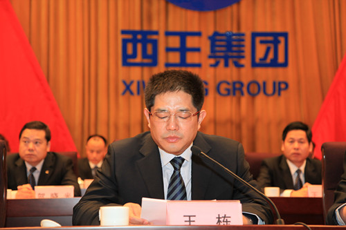 王勇董事長作重要講話,他首先對受表彰的先進集體和先進個人表示祝賀,對各公司經理班子表現出的良好精神面貌給予肯定,對王棟總經理的2012年工作總結報告和2013年工作部署表示贊同。隨后,王勇董事長認真分析了國內外經濟發展形勢,并結合西王集團實際提出了自己的看法與見解:2008年開始的國際金融危機至今仍在持續,目前雖然美國經濟開始復蘇,但歐洲、中國的經濟仍然復雜多變,深不見底。為此,西王集團一方面夯實資金鏈條,一方面拓展期貨市場,提高企業的抗風險能力。與吉林玉米批發市場合作建立的山東省最大玉米交割庫落戶西王,有力保證了企業玉米需求,降低了成本;在融資方面,2012年年初企業發行了25億元的企業債券,年末又有41億元債券獲批,第一期10億元的中票已經到賬,剩余部分將陸續發行。此外,西王特鋼于年初在港交所成功掛牌上市,開創了在特殊時期、特殊環境下,特殊行業成功上市的典型范例。年底,西王文化置業又成功登陸資本市場,企業資本運作成績喜人。同時,特鋼項目進展順利,淀粉一廠全面投產達產,玉米油品牌做到了家喻戶曉。王勇董事長對在上述工作中做出突出貢獻的干部提出了特別表揚,號召干部職工向他們看齊,為西王的發展多做貢獻。