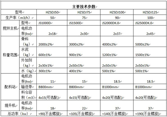 HZSDJ125集裝箱式垂直斗提攪拌站主要技術參數: