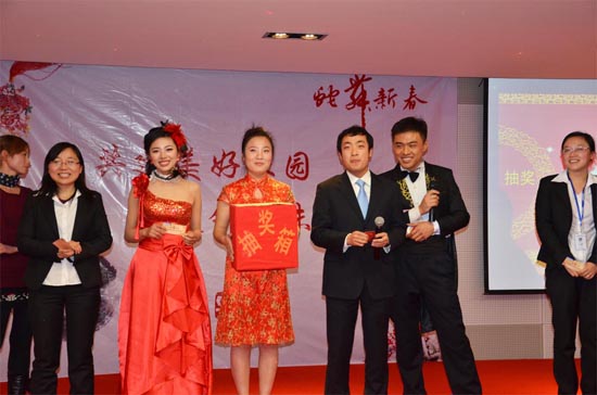 頒獎(jiǎng)典禮穿插在文藝節(jié)目當(dāng)中進(jìn)行,當(dāng)晚共頒出五大獎(jiǎng)項(xiàng),有最佳新人獎(jiǎng)、最佳進(jìn)步獎(jiǎng)、最有價(jià)值員工獎(jiǎng)、最佳團(tuán)隊(duì)獎(jiǎng)和董事長(zhǎng)特別嘉獎(jiǎng),共有五位個(gè)人、三個(gè)團(tuán)隊(duì)獲得殊榮,為全體員工樹(shù)立了榜樣,贏得全場(chǎng)熱烈的掌聲。此外,晚會(huì)上的幸運(yùn)抽獎(jiǎng)特別引人期待,本次共設(shè)置四個(gè)獎(jiǎng)項(xiàng)、19個(gè)中獎(jiǎng)名額,當(dāng)一等獎(jiǎng)價(jià)值7000多的尼康單反相機(jī)最終花落李大廚手里時(shí),不知招致多少人的“羨慕嫉妒恨”呢。當(dāng)然,沒(méi)抽到獎(jiǎng)的也不能空手而歸,公司給每位員工發(fā)了新年禮品---一臺(tái)價(jià)值400元的美的豆?jié){機(jī)。晚會(huì)結(jié)束,大家?guī)е鴿M(mǎn)滿(mǎn)的笑容,邁著輕盈的步伐,攜手共赴奧萊特團(tuán)圓家宴。