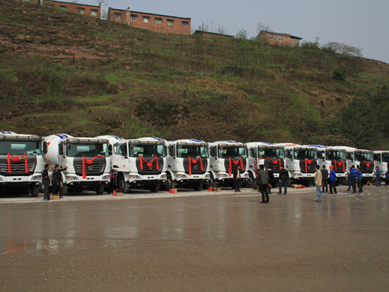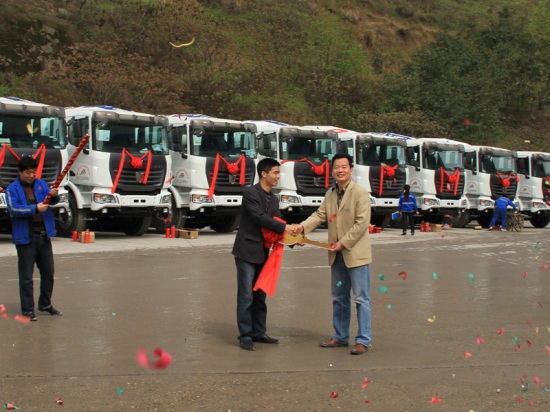 2013年3月13日,在重慶富皇混凝土攪拌站舉行了隆重的交車儀式,中集集團重慶4S店總經理段延超將金鑰匙交付重慶富業汽車運輸有限公司經理張勇軍。至此,首批10臺中集凌宇LNG攪拌車入駐重慶,并開始為當地的建設做出貢獻。富皇集團作為重慶混凝土行業的領軍企業,此次的LNG項目順利實施,對整個重慶的混凝土行業產生了很大影響,相信經過實踐的檢驗,其它攪拌站也將相繼啟動該項目。