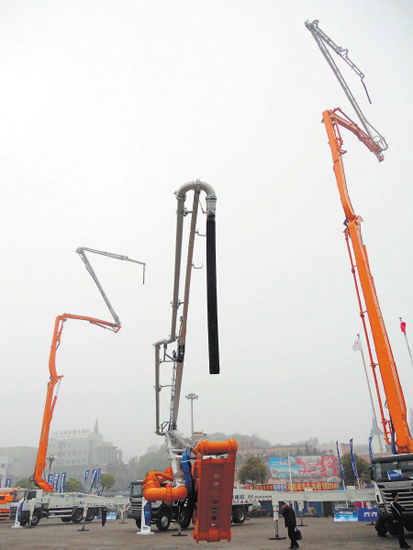 一字排開(kāi)的“擎天”系列混凝土泵車,有如美國(guó)科幻大片《變形金剛》中的汽車人——擎天柱。近日,中聯(lián)重科混凝土機(jī)械公司2013年度品牌巡展在首站長(zhǎng)沙,推出全球獨(dú)創(chuàng)的碳纖維臂架系列泵車,實(shí)現(xiàn)批量上市。其中,臂長(zhǎng)80米和101米兩款碳纖維臂架泵車,曾刷新臂架長(zhǎng)度吉尼斯世界紀(jì)錄。