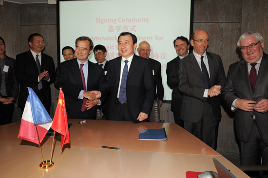 中材集團董事長劉志江、拉法基集團CEO樂峰(Bruno Lafont)代表雙方簽署戰略合作框架協議。