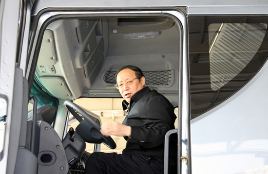 在總裝車間出口處,王學軍駐足在剛剛下線的一輛華菱星凱馬車前,并饒有興趣地登上駕駛室,親自體驗這款高端重卡的駕乘感受,寬大的空間、精美的內飾、電子設備和完備的安全設施讓他贊不絕口,連說“好”、“不錯”……