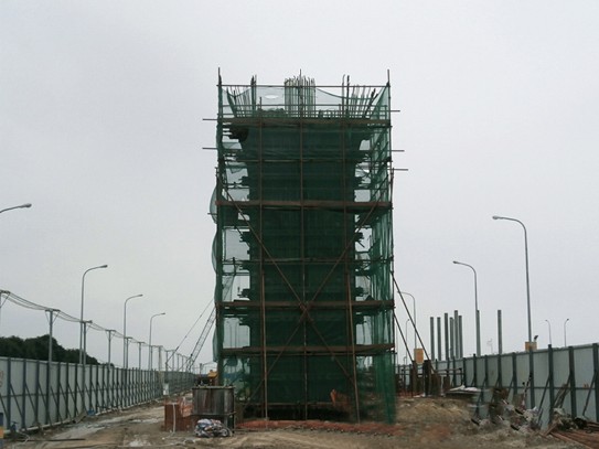 剛剛澆筑完成后的澳門輕軌第一墩柱