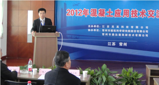 3月31日 ,由江蘇尼高科技公司主辦,常州市建筑科學(xué)研究院股份有限公司與常州市鼎達(dá)建筑新技術(shù)有限公司協(xié)辦的2012年混凝土應(yīng)用技術(shù)交流會(huì)在江蘇尼高科技公司行政大樓三樓會(huì)議室隆重召開(kāi)。來(lái)自江蘇、上海、安徽、浙江等省多家混凝土技術(shù)科研機(jī)構(gòu)、生產(chǎn)企業(yè)及其他相關(guān)單位的80余位領(lǐng)導(dǎo)、專家受邀參加會(huì)議,院余榮漢董事長(zhǎng)、楊江金總經(jīng)理、陳紅根副總經(jīng)理及公司相關(guān)領(lǐng)導(dǎo)、部門(mén)人員出席了會(huì)議。