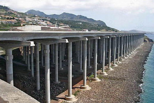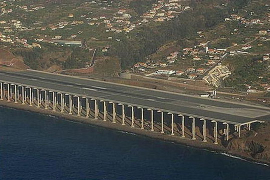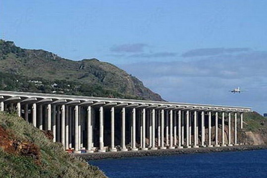 葡萄牙境內一座奇特的機場:機場的跑道全長有2781公尺,其中1000公尺的跑道,是由180根混凝土柱來支撐,每根柱子有50公尺長(相當于17層樓),令人驚訝的是跑道的機構設計允許波音747起降,看看跑道下的車子,這工程實在是浩大。