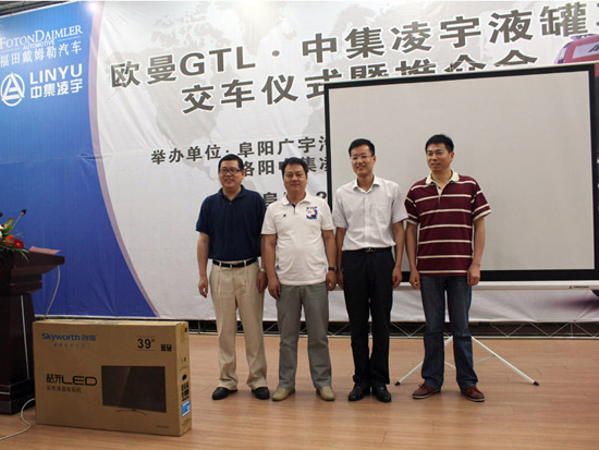 2013年6月9日,洛陽中集凌宇汽車有限公司聯(lián)合北京福田戴姆勒汽車有限公司營銷公司、阜陽廣宇汽車銷售服務有限公司在安徽阜陽南山賓館成功舉辦了“液罐車產品推介會暨交車儀式”。