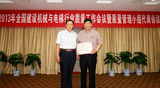 為貫徹落實《中華人民共和國產品質量法》,表彰在質量管理方面取得突出成效的企業及企業領導人,引導和激勵企業追求卓越和競爭能力,更好地服務社會、服務用戶、推進質量發展事業,根據中國質量協會工作精神與要求,中國質量協會建設機械行業分會在建設機械與電梯行業中設立全國建設機械與電梯行業“質量管理活動優秀企業、卓越領導者”獎。方圓集團董事局主席高秀以其對產品質量的高度重視,并在方圓集團成功推行質量管理卓越績效模式,大力推進和強化企業質量管理工作,企業產品質量穩步提升,受到行業及廣大用戶的一致贊譽,方圓集團于2012年12月榮獲首屆全國建設機械與電梯行業質量金獎鼓勵獎,方圓集團董事局主席高秀又在此次會議上榮獲“2013年度質量管理活動卓越領導者”稱號。