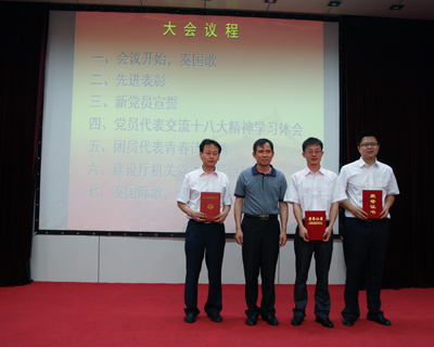 大會首先進行了表彰儀式,我公司喜獲多項榮譽。公司黨總支第一黨支部榮獲“先進黨支部”稱號,毛良喜、石亮、周棟梁、續榮貴和安永飛五位同志榮獲“先進黨員”稱號。大會還表彰了江蘇省五一勞動獎章獲得者、省級優秀青年標兵和江蘇省青年崗位能手,我公司洪錦祥、薛永宏和李磊三位同志先后登臺接受表彰。