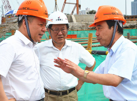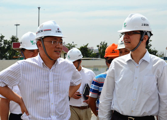 7月4日上午,上海市副市長周波到上海建工集團承建中的世博浦西工地和浦東B03地塊商飛總部基地一期、A片區A10-01地塊工程現場調研。在聽取集團董事長徐征等關于工程進展情況介紹后,周波對上海建工精心組織、不計條件推進后世博工程建設表示肯定,要求在保證質量、安全的前提下確保工程節點目標,同時要抓好工地防暑降溫工作。