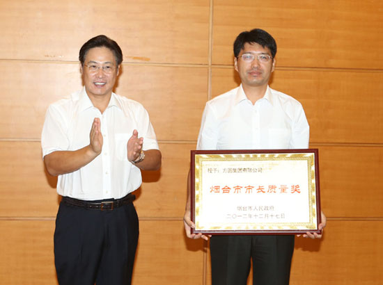 8月6日上午,煙臺市質量強市工作座談會召開,會議通報了2012年全市質量強市工作情況,并公布了2012年煙臺市市長質量獎獲獎企業和個人,包括我集團在內的7家企業和3名個人榮獲2012年“煙臺市市長質量獎”,在會議上受到表彰。集團副總經理劉長城參加會議并領取獎牌。
