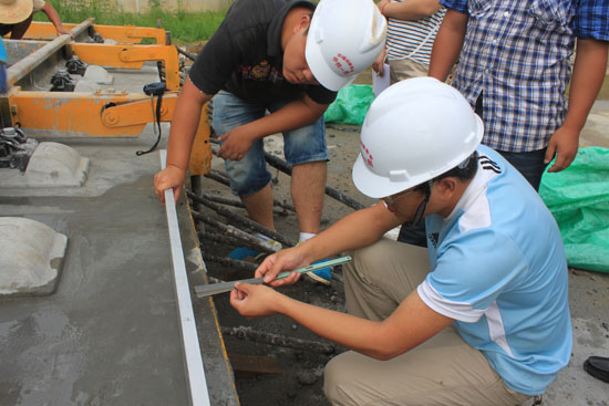 組織多次培訓(xùn),學(xué)習(xí)CRTS I型無砟軌道施工工藝,對項(xiàng)目部全體技術(shù)人員進(jìn)行考核,確保每個(gè)技術(shù)人員熟悉施工工藝和工法;另一方面安排主要負(fù)責(zé)人到其他兄弟單位參觀學(xué)習(xí),積極交流,從中吸取先進(jìn)的施工經(jīng)驗(yàn),揚(yáng)長避短,施工中少走彎路,確保產(chǎn)品一次成優(yōu)。