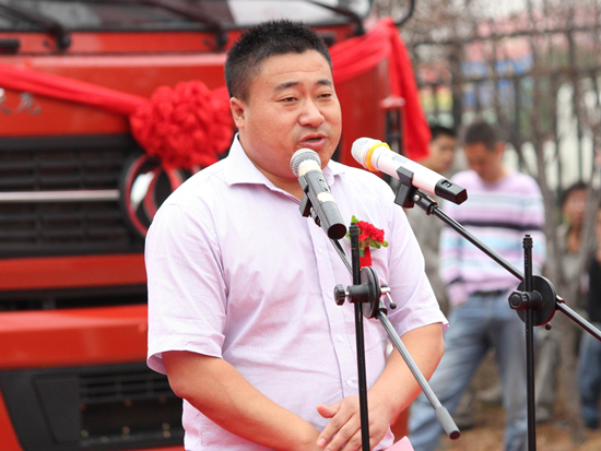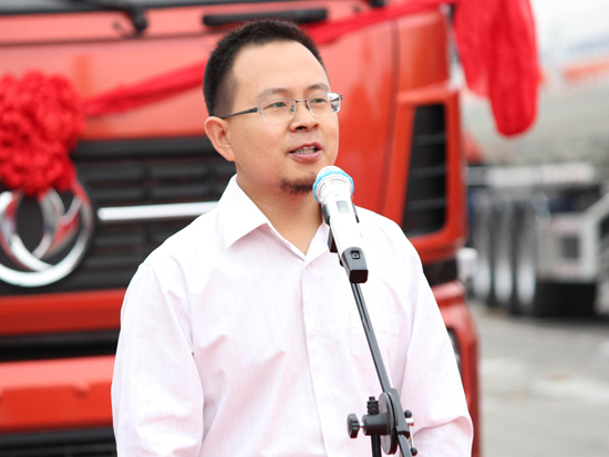 發(fā)車儀式上午10點鐘正式開始,由中集凌宇營銷公司市場部部長常國強主持。熱情洋溢的開場過后,由中集凌宇胡柏林講話,胡總對各位嘉賓的到來表示歡迎過后,對中集凌宇專用車目前的生產現(xiàn)狀做了概述,強調液罐車為專用車三大支柱產品之一,公司今年以來通過對生產線的持續(xù)改造,液罐半掛車產能逐步提高。胡總強調,此次合作是彼此的首次合作,相信一定是雙贏的合作。胡總講話過后,母總也做了發(fā)言,表示之所以選擇中集凌宇的產品,是由于中集凌宇的品牌影響力及質量過硬的產品。他們在選擇中集凌宇之前,對多家生產商進行了調研,最終被中集凌宇液罐半掛車優(yōu)質的罐體材料、穩(wěn)定的整車性能、靚麗的外觀、較高的性價比所吸引。此次合作只是開始,后期還會陸續(xù)訂購中集凌宇的液罐車產品。