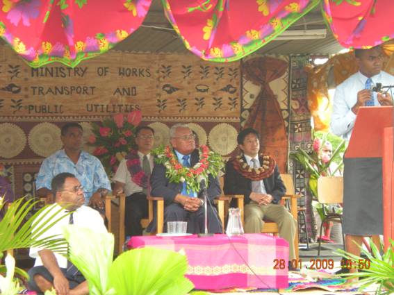 韓大使,斐濟國土部部長,陳參贊、斐濟公共交通事業部部長參加典禮