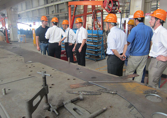 交流活動(dòng)中,專家組介紹了奧鋼聯(lián)鋼材的制造流程和高強(qiáng)鋼焊接方法,并結(jié)合徐工的實(shí)際生產(chǎn)情況和要求,特別從溫度控制對(duì)高強(qiáng)鋼焊接性能的影響及控制手段等方面,與各相關(guān)部門的技術(shù)人員進(jìn)行了深入探討;在徐工施維英泵送結(jié)構(gòu)分廠,專家組進(jìn)行了板材的焊接實(shí)驗(yàn),對(duì)現(xiàn)場(chǎng)焊接電流、電壓、速度等焊接工藝參數(shù)進(jìn)行對(duì)比驗(yàn)證,并從操作手法和規(guī)范上與現(xiàn)場(chǎng)工人師傅進(jìn)行切磋交流。