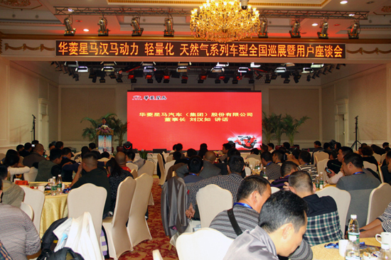 11月11日,華菱星馬漢馬動力、輕量化、天然氣系列車型巡展車隊抵達“楚漢名城”——長沙。漢馬動力雖然是第一次走進長沙,但出乎意料的受到湖南客戶的熱捧,吸引了500余名湖南地區華菱星馬客戶齊聚長沙明城國際大酒店,參加“華菱星馬漢馬動力、輕量化和天然氣重卡全國巡展暨用戶座談會”,共同聆聽新產品介紹、分享用車經驗。