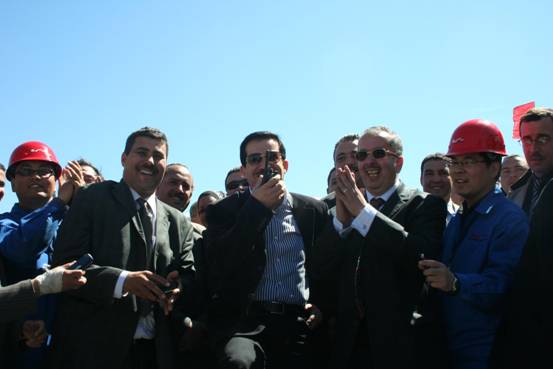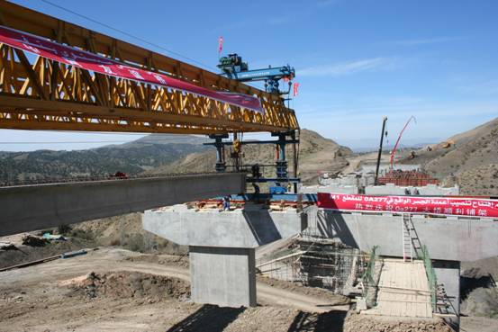 3月22日,業(yè)主向阿爾及利亞國家公共工程部長阿瑪爾·古勒匯報說OA277大橋要在3月24日架梁,感到很驚訝。2008年10月18日,工程部長來中鐵十四局集團四公司施工現(xiàn)場視察,聽業(yè)主匯報該標段18.147公里中有挖方570萬方、遠距離運土填方430萬方、大橋7座、廂涵30道2247.3延米、圓管涵16道667.69延米、抗滑樁162根等,感到很是震驚,這是工程量最大的一個標段!能不能按期完工,工程部長很是擔心。現(xiàn)在,中鐵十四局集團四公司項目部施工現(xiàn)場發(fā)生了巨大的變化,挖方已完成540萬方、填方已完成250萬方、7座大橋下部結(jié)構(gòu)基本完成、廂涵和圓管涵全部完工、抗滑樁也接近尾聲,簡直是神速!