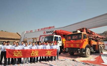 三一員工喜迎11年前我國首臺37米泵車“回家”