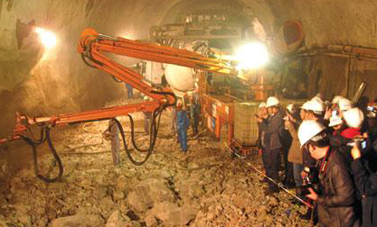 中聯(lián)重科大客戶部組織混凝土機(jī)械公司、路面機(jī)械公司大客戶體系領(lǐng)導(dǎo)攜旗下意大利CIFA生產(chǎn)的CSS3混凝土噴射機(jī)械手等設(shè)備參加了此次技術(shù)交流會(huì)。與會(huì)全體代表來(lái)到云桂線石林隧道,觀摩中聯(lián)重科CSS3混凝土噴射機(jī)械手以及中鐵一局機(jī)械廠生產(chǎn)的多功能鑿巖臺(tái)鉆施工表演。代表們對(duì)石林隧道機(jī)械化施工表示充分肯定,對(duì)中聯(lián)重科CIFA混凝土噴射機(jī)械手的表現(xiàn)給予了高度贊揚(yáng)。