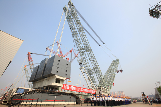 由中聯重科自主研發制造的超大噸位履帶起重機ZCC3200NP于5月28日成功下線,該起重機專門針對我國第三代核電站CAP1400施工吊裝而開發,最大起重量達到3200噸,最大起重力矩達到82000噸米,為世界上起重能力最強的移動式起重機。