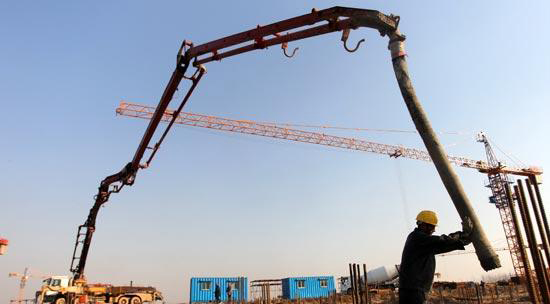 徐工泵車正在徐州奧體中心進行混凝土澆筑作業。徐州奧體中心坐落在徐州市新城區,作為2014年十八屆省運會主場館,預計2013年6月建成,建成后將成為蘇北體量最大的體育場館,也將成為徐州的城市會客廳和新的地標性建筑。