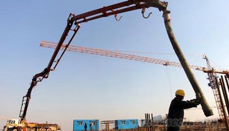泵車正在徐州奧體中心進(jìn)行混凝土澆筑作業(yè)。徐州奧體中心坐落在徐州市新城區(qū),作為2014年十八屆省運(yùn)會(huì)主場(chǎng)館,預(yù)計(jì)2013年6月建成,建成后將成為蘇北體量最大的體育場(chǎng)館,也將成為徐州的城市會(huì)客廳和新的地標(biāo)性建筑。
