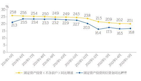 2012年我國固定資產投資增速同比略有下降。2011年全年固定資產投資同比增速為23.8%,2012年1-5月該數據僅為21.0%,下降近3個百分點。近日國務院常務會議提出“把穩增長放在更加重要的位置”,發改委近期也審核批準多個項目,這表明下半年固定資產投資到位情況或將有所改善。