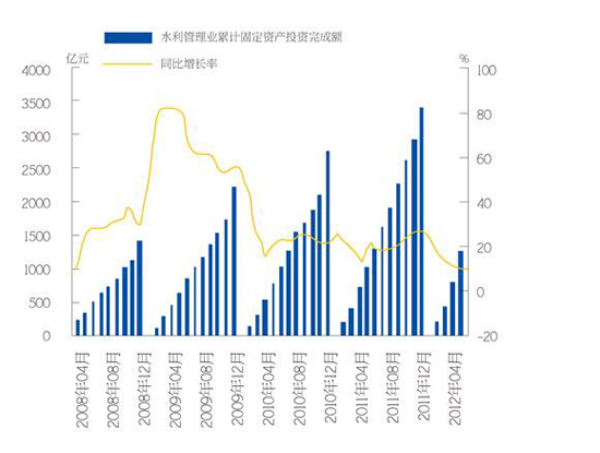 圖7 2008年1月-2012年4月水利投資完成情況統計