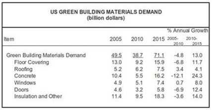 據美國俄亥俄州專家預測,估計到2015年美國的綠色建筑材料市場將較目前上漲13%,預計將會達到711億美元。