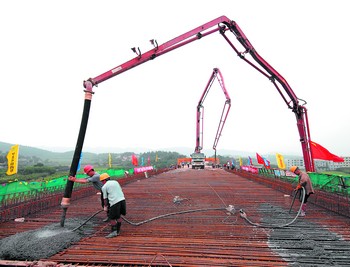6月19日下午5時,中鐵四局武廣II標(biāo)三項(xiàng)目隊(duì)順利完成了蘆荻塘特大橋第19跨梁320立方米混凝土的澆灌任務(wù),至此,武廣客運(yùn)專線蘆荻塘特大橋主體順利完工。蘆荻塘特大橋位于長沙縣跳馬鄉(xiāng),長867米,于2006年10月29日開工建設(shè)。