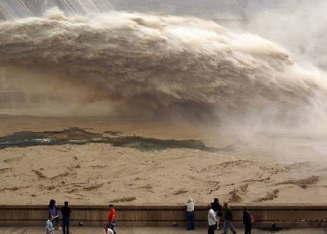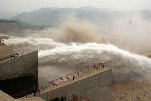 6月19日,游客參觀黃河小浪底水庫調水調沙。黃河小浪底水庫于19日9時開始實施調水調沙。這是自2002年以來黃河小浪底的第七次調水調沙。