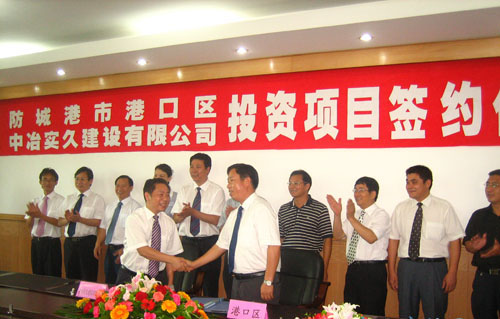 7月4日上午,防城港市港口區(qū)和中冶實(shí)久建設(shè)有限公司舉行投資項(xiàng)目簽約儀式,拉開(kāi)了港口區(qū)項(xiàng)目建設(shè)大會(huì)戰(zhàn)的新高潮。
