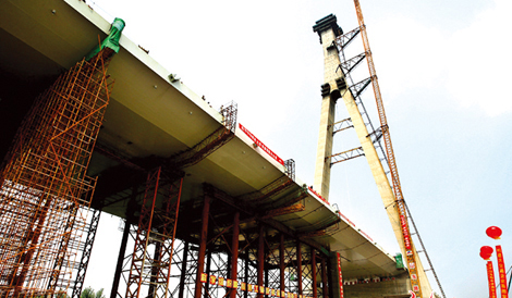 青銀高速濟(jì)南繞城北線(xiàn)工程,是國(guó)家高速公路網(wǎng)青島至銀川高速公路和濟(jì)南繞城高速的主要組成部分,建成后東西分別與濟(jì)青、濟(jì)聊高速相連接。工程于2005年4月開(kāi)工,全長(zhǎng)62.834公里。其中黃河大橋是工程的重要組成部分,全長(zhǎng)4473.04米,大橋主橋跨徑在目前同類(lèi)橋梁中位居世界第三、亞洲第一,主跨徑組合為60+60+160+386米,橋型為獨(dú)塔雙索鋼箱梁斜拉橋,橋?qū)?0.5米,橋塔為高度195米的倒Y型結(jié)構(gòu)。兩岸跨黃河大堤引橋采用預(yù)應(yīng)力混凝土連續(xù)梁結(jié)構(gòu),灌注樁柱長(zhǎng)140米,為國(guó)內(nèi)橋梁第一深樁。