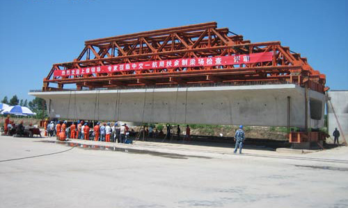 此次局級評審鑒定由集團組織,中鐵六局豐臺橋梁場、北京景巖橋梁咨詢公司、天津新亞泰監理公司等單位的六位專家組成的專家組依據全許辦200631號文《預應力混凝土鐵路橋簡支梁產品許可證實施細則》的要求,對兩梁場的生產能力、生產工藝、生產設備、工藝設備、計量試驗器具及產品質量等進行了認真檢查、考核;對梁場質量管理的組織、機構、職責、有效實施以及技術力量、人員素質等進行了考核確認;對梁場生產的首榀箱梁進行了靜載試驗,同時抽取了3榀梁進行了外形、外觀檢查,并按要求對其質量體系進行了審核。