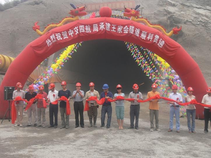 08年7月29日,七經(jīng)部王家會(huì)隧道出口禮炮齊鳴,中交管段第二長隧道王家會(huì)隧道貫通慶典儀式隆重舉行。中交太中銀鐵路工程指揮部指揮長權(quán)縣民到場祝賀。