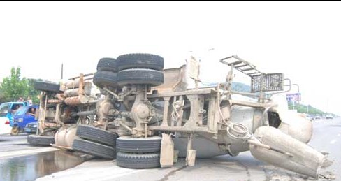 8月25日上午9時(shí)左右,在煙臺(tái)市芝罘區(qū)青年南路與魅玉路交匯處,一輛混凝土攪拌車因車速過快,為躲避斑馬線上兩名推自行車的少年時(shí),撞上路口一輛轎車,又越過一輛面包車后側(cè)翻在地。