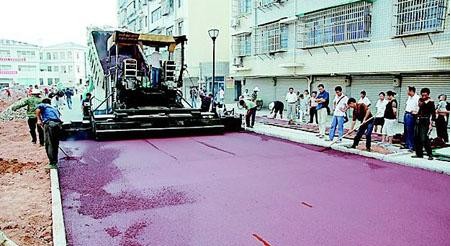9月2日下午,在天元區國土支路的西側,我市首條彩色瀝青混凝土路面已開始鋪設,預計將在9月4日完工。
