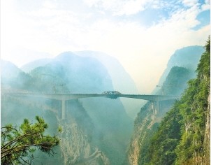 它就是沿溪溝大橋,橋面距谷底280米,比2004年通車、號稱“世界之最”的法國米約大橋還高10米;次之的重慶“第二高橋”橋面與谷底距離為263米,也在“世界高橋”中位居前列。