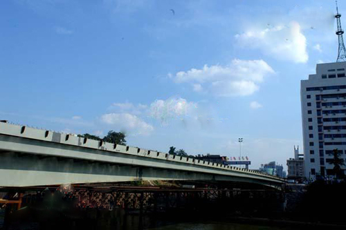 據(jù)了解,宿州路南淝河橋全長68米,橋?qū)?6米,上部結(jié)構(gòu)為鋼箱梁,下部結(jié)構(gòu)采用預(yù)應(yīng)力墩臺,鋼筋混凝土承臺及鉆孔灌注樁群樁基礎(chǔ)。全面通車之后,該橋直通宿州路和明光路,將大大緩解阜陽路交通擁擠狀況。