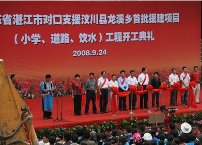 廣東省湛江市援建四川地震災(zāi)區(qū)汶川縣龍溪鄉(xiāng)中心小學(xué)、龍溪鄉(xiāng)東門口至龍溪鄉(xiāng)政府道路、龍溪鄉(xiāng)供水改造工程今天正式啟動,并力爭于明年9月投入使用。