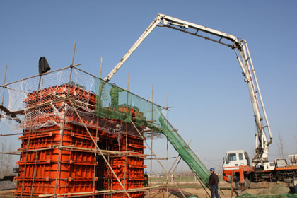 根據中建股份石武客專河南段項目部的要求,結合現場實際情況,為更好的體現中建五局在石武客?!罢怪薪L采,永遠爭第一”的精神,中建五局石武客專項目積極響應中建股份石武客專河南段項目部開展“首個一”勞動競賽活動的號召,經過項目部全體員工08年12月份的共同努力,于12月31日13:00開始許漯特大橋931#墩身混凝土澆注,至18:30順利澆筑完成,實現了中建股份石武客專河南段項目部許漯特大橋第一個墩身的混凝土澆筑施工。931#墩身混凝土的澆筑完成,標志著我局石武項目墩身施工的正式展開。