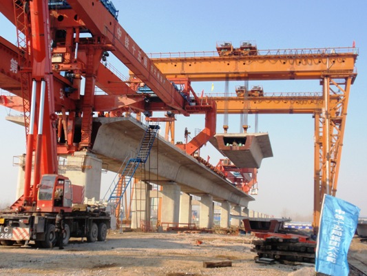 六公司京滬鋪架工區下設架梁一、二、三隊和鋪軌隊,架梁一隊以固鎮城關梁場為起點向北架梁,自12月7日成功架設第一片整孔箱梁以來已架梁12孔,架梁速度正穩步提升;架梁二隊和架梁三隊起點位于磨盤張梁場,自11月下旬進場以來,經過全體參建員工夜以繼日的勞作,現已完成2臺900T架橋機和運梁車的組裝,將于本月20號向上海和北京兩個方向同時架梁。