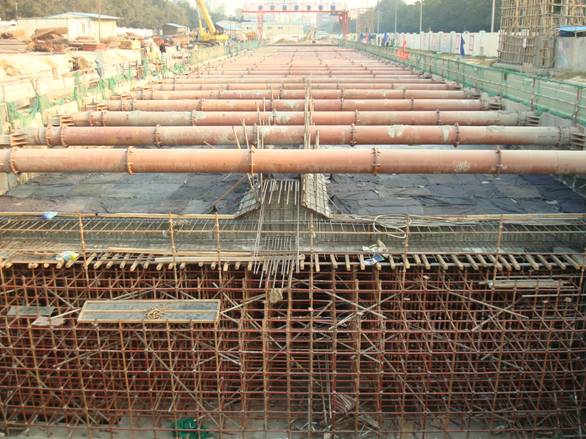 1月14日下午,市政環(huán)保公司深圳地鐵2號線2221標(biāo)段僑城北站二區(qū)主體結(jié)構(gòu)頂板混凝土澆注開始施工,標(biāo)志著深圳地鐵2號線僑城北站開始進(jìn)入主體結(jié)構(gòu)封頂施工。